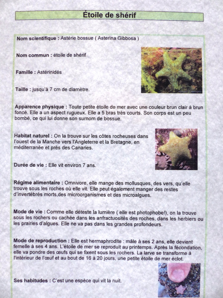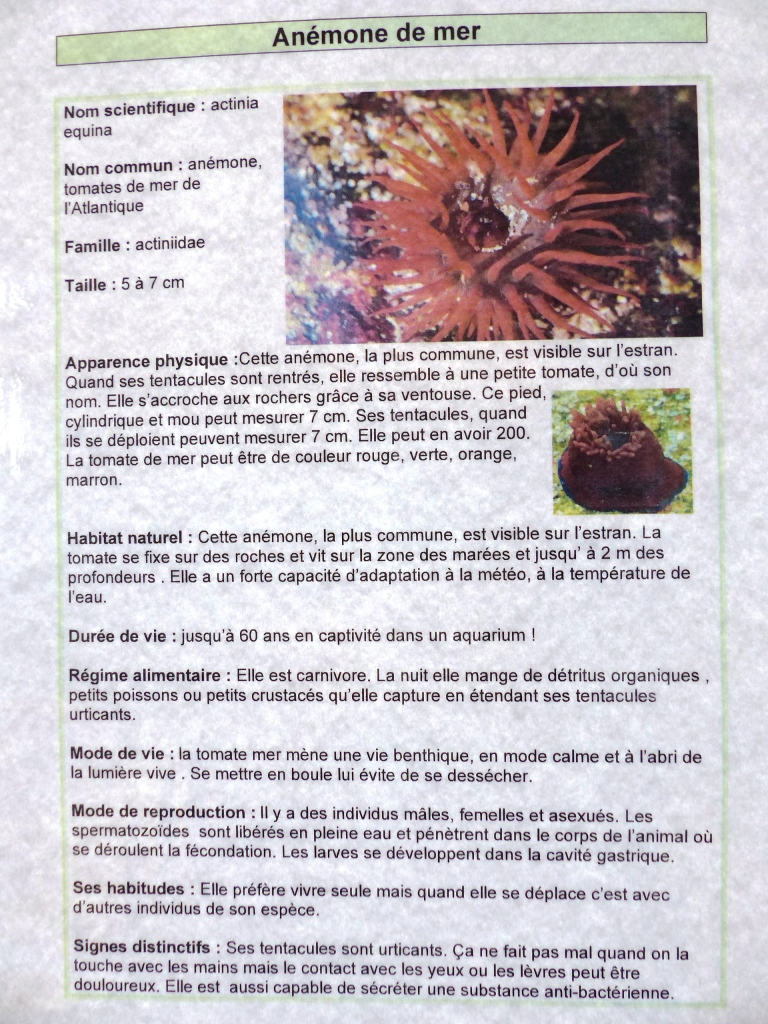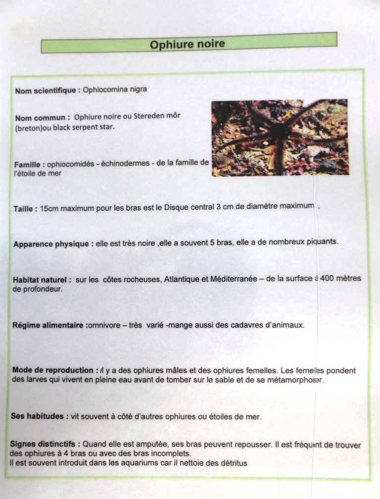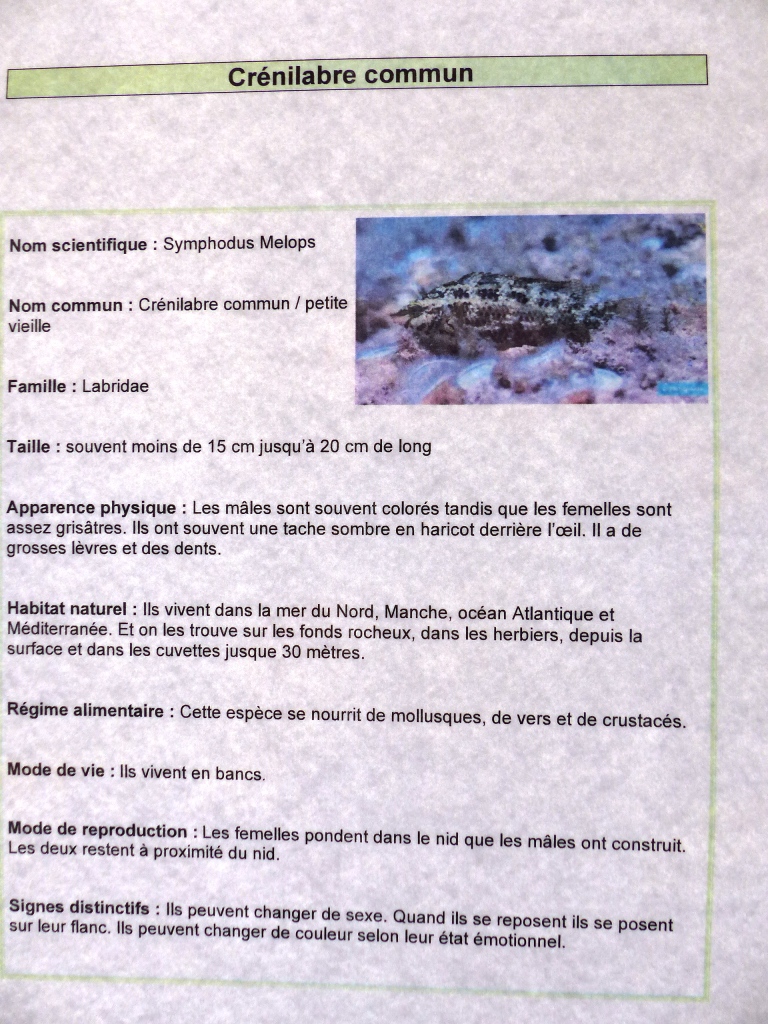 Les espèces de l’aquarium d’eau de mer (suite)