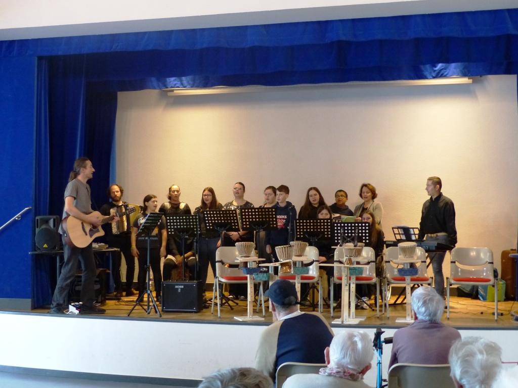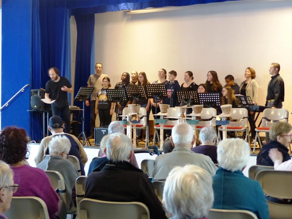Des résidents de l’Ehpad Lannouchen en répétition chorale avec les collégiens