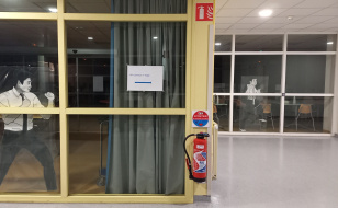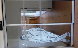 Derrière la vitre, à la manière d’Ernest-Pignon Ernest, découvrez l’exposition éphémère des élèves dans le centre de soins
