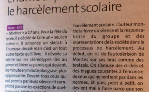 La critique d’Alex dans le Télégramme du 24 avril