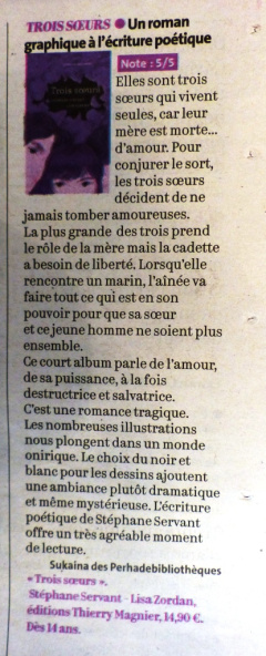 - La critique de Laura, Elouan et Joanna dans le Télégramme du dimanche