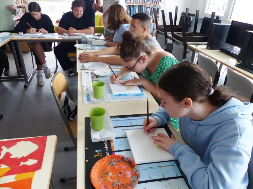 Sous les conseils avisés des artistes, les élèves créent et laissent libre cours à leur imagination :