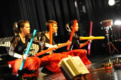 Plein d’instruments de musique différents étaient disposés sur la scène. J’ai reconnu un xylophone, des tambours, des cymbales mais il y avait encore d’autres instruments que je ne connaissais pas.